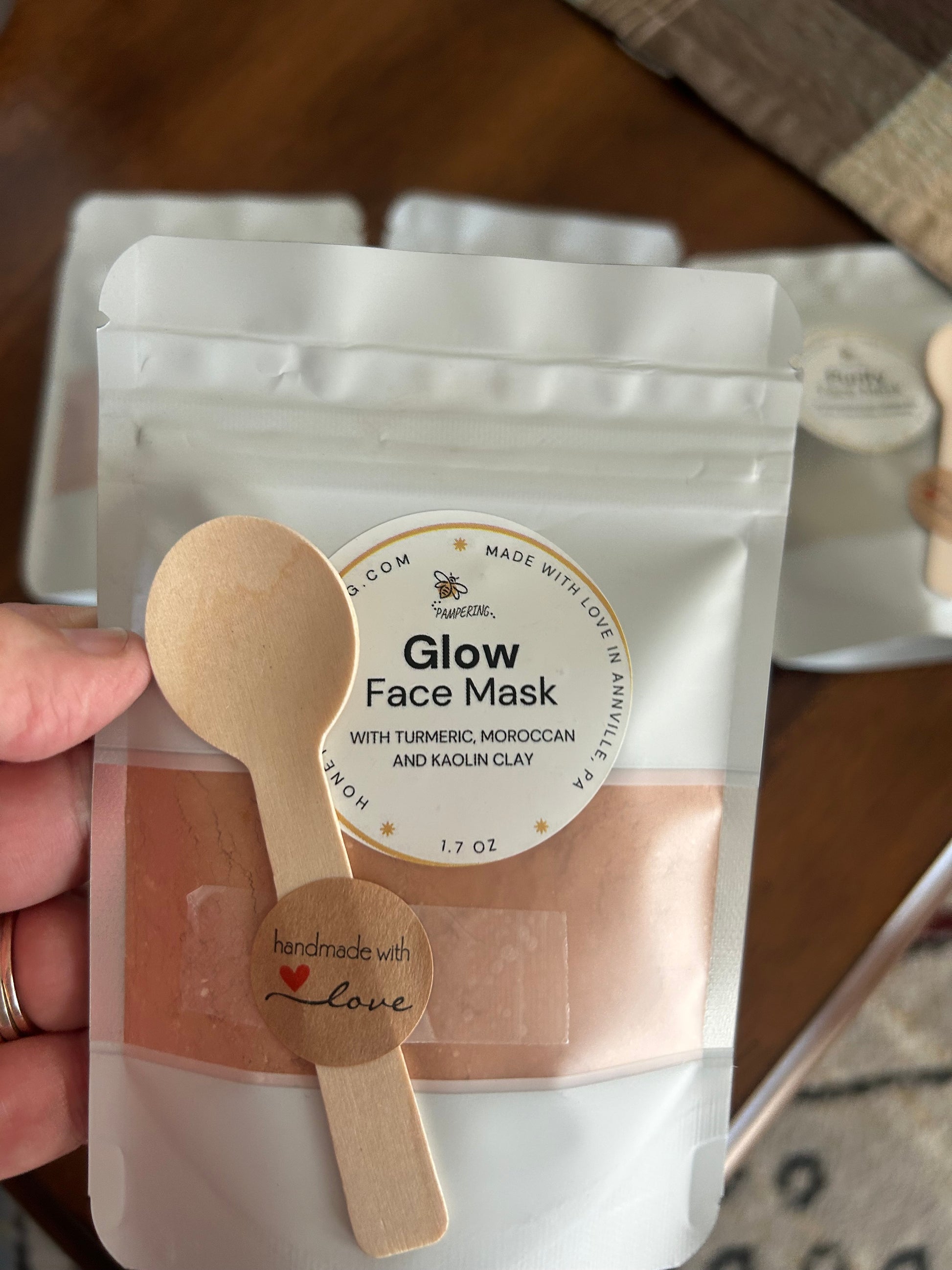 Glow Face Mask: Dull skin? Meet your match. Our Glow Mask with Turmeric, Moroccan clay, and Kaolin brightens, detoxes, and smooths. Just add water, apply, rinse, and follow with your bee_restored moisturizer. Radiance, simplified.